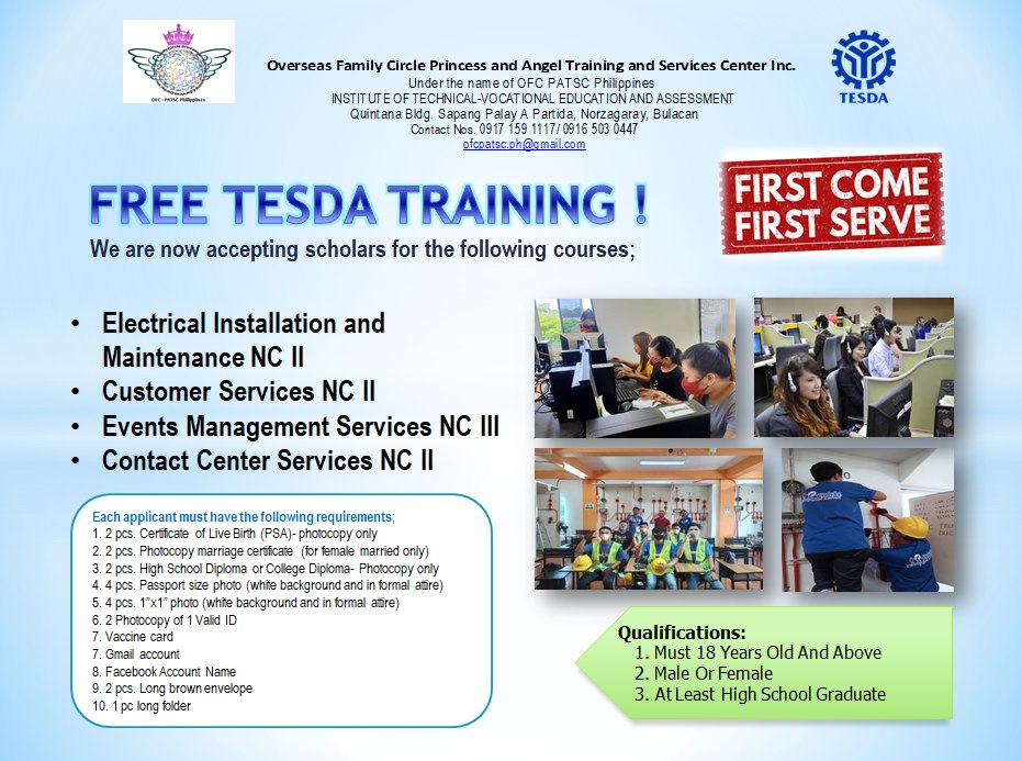 Located in Bulacan, OFCPATSC Philippines is more than just a training center – it is a sanctuary for empowerment and transformation. Accredited by TESDA (Technical Education and Skills Development Authority), the center offers a wide range of courses tailored to meet the needs of OFWs and their families. From Electrical Installation and Maintenance to Customer Services and Events Management, OFCPATSC equips its students with the skills and knowledge necessary to thrive in today’s competitive job market.