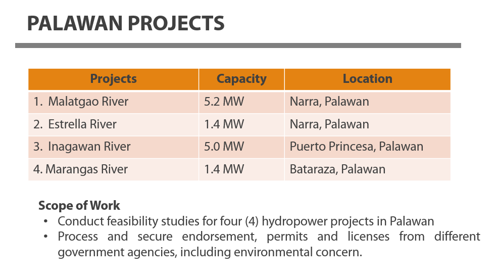 Project Components : Construction of Weir, 2.8km Tunnel, 8km Access Road, Power House and Surge Shaft.